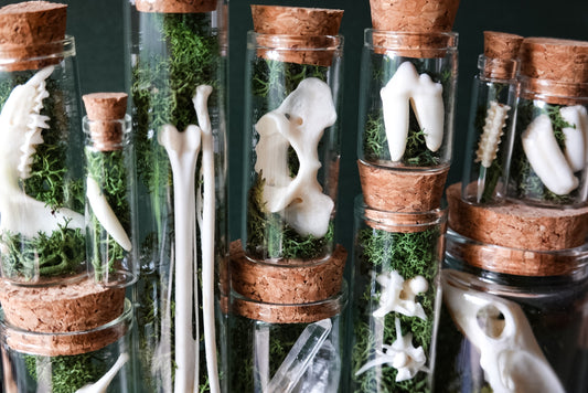 5 pcs. Natural History Mystery Box of Glass Vials filled with Norwegian Moss and Bones!