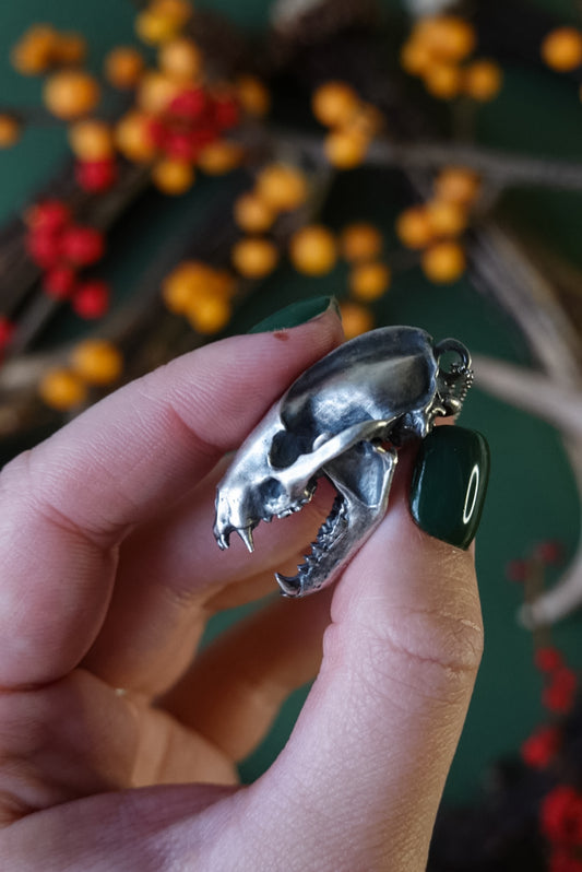 925 Sterling Silver Badger Skull Pendant – Intricately Detailed